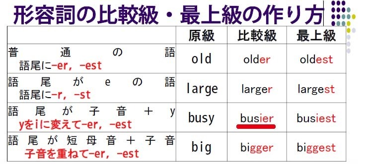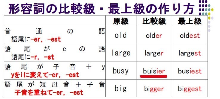 無料動画中、【形容詞の比較級・最上級の作り方】表中の単語の綴りに誤りがありましたので下記のように訂正します。